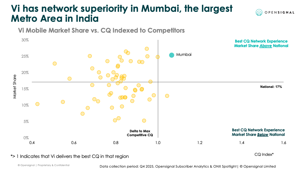 Vodafone Idea’s performance in Mumbai illustrates this trend. Despite experiencing subscriber losses nationally, with Jio accounting for 59 percent of its net losses in the fourth quarter of 2025, Vi maintains a strong foothold in Mumbai. This is supported by its ₹45,000 crore ($4.5 billion) Capex plan targeting 17 priority circles, including Maharashtra, combined with localized customer value management strategies such as Below-The-Line offers and region-specific digital bundles. Rather than engaging in nationwide price competition, Vi is reinforcing its market position through targeted, location-specific initiatives.