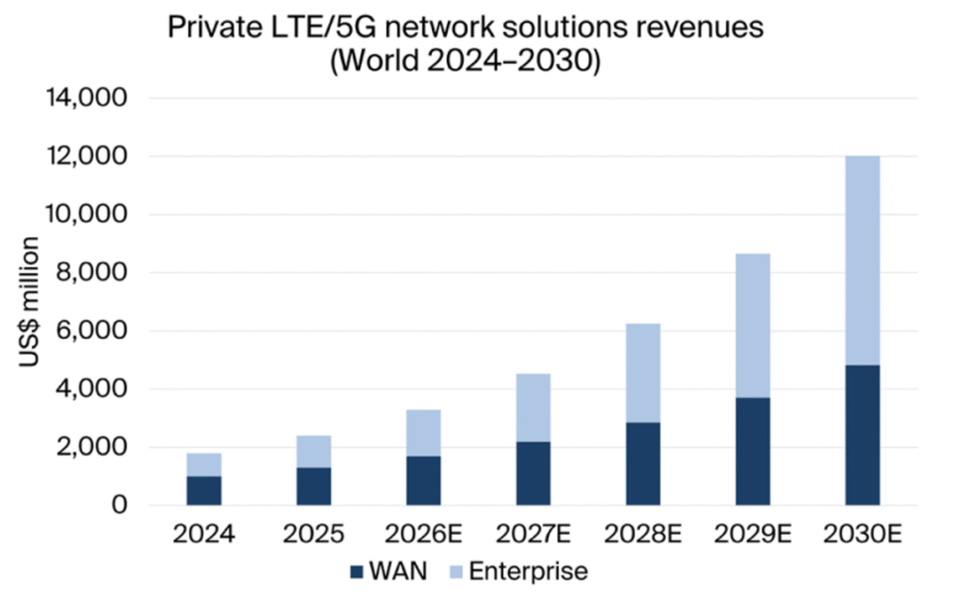 The global market for private LTE and 5G network solutions is entering a high-growth phase, fueled by enterprise digital transformation, dedicated spectrum availability, and rising demand for mission-critical connectivity. According to industry estimates from Berg Insights, the market reached approximately $2.4 billion in 2025 and is projected to reach $12.0 billion by 2030, expanding at a CAGR of 38 percent.