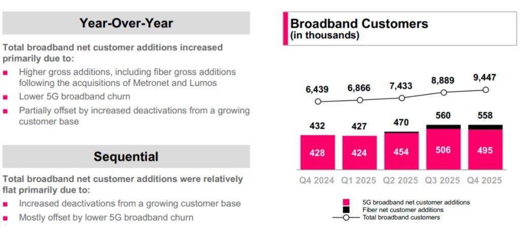 Total broadband customers reached 9.5 million, including 558,000 net additions in Q4 alone.