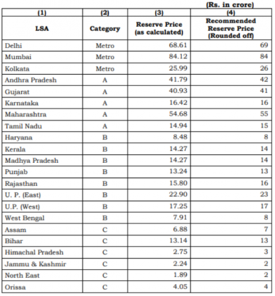 The average expected valuation of spectrum band in a LSA should be the higher of the two figures – (i) average expected valuation of that band based on simple mean or (ii) the auction determined price of October 2016.