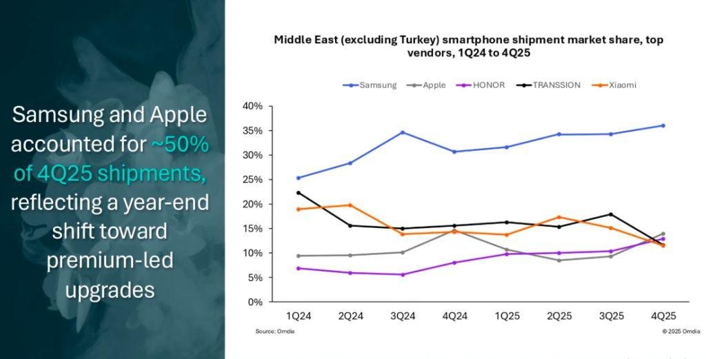 However, Samsung and Apple are expected to remain comparatively stable as vendors prioritize scale markets such as Saudi Arabia and the UAE, where premium demand remains strong.